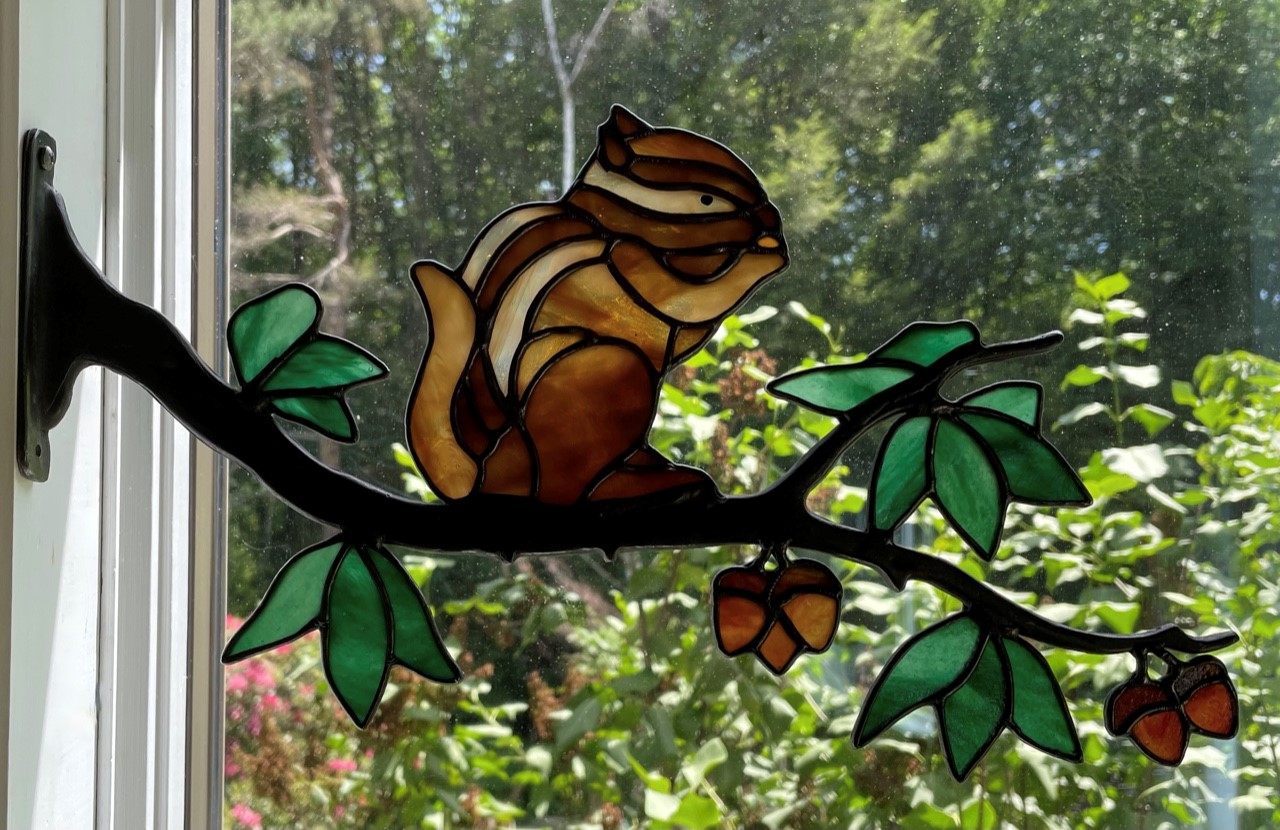 NEW DESIGN! Charlie Chipmunk with Acorns sits on a 13 1/2 inch branch. $135.00