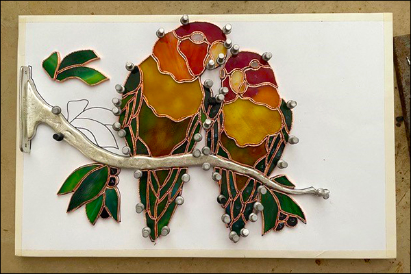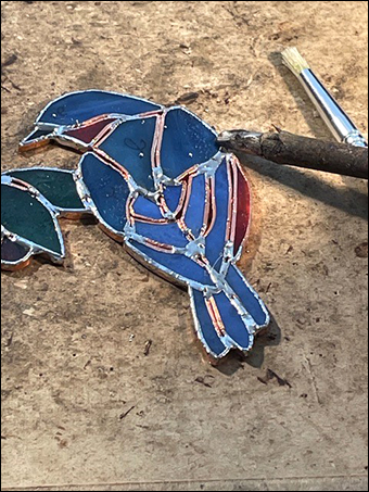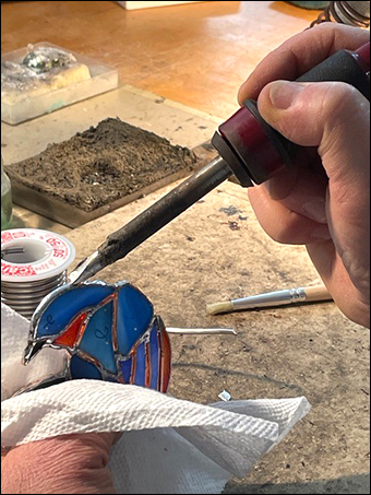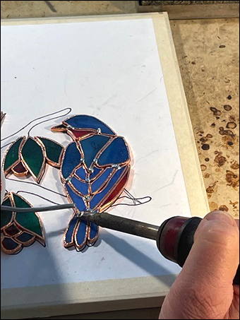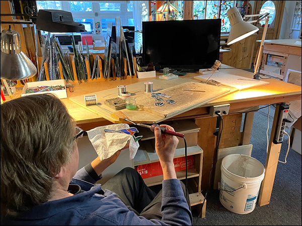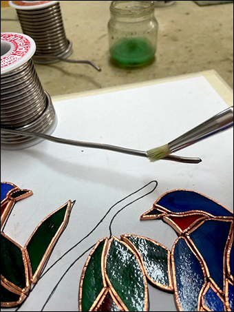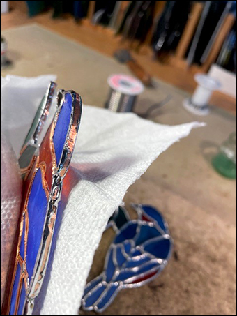 Second, when I sit this low, any fumes from the solder and flux are not drifting into my face while edge beading, they will get their chance later when I return to do the finished flat soldering.