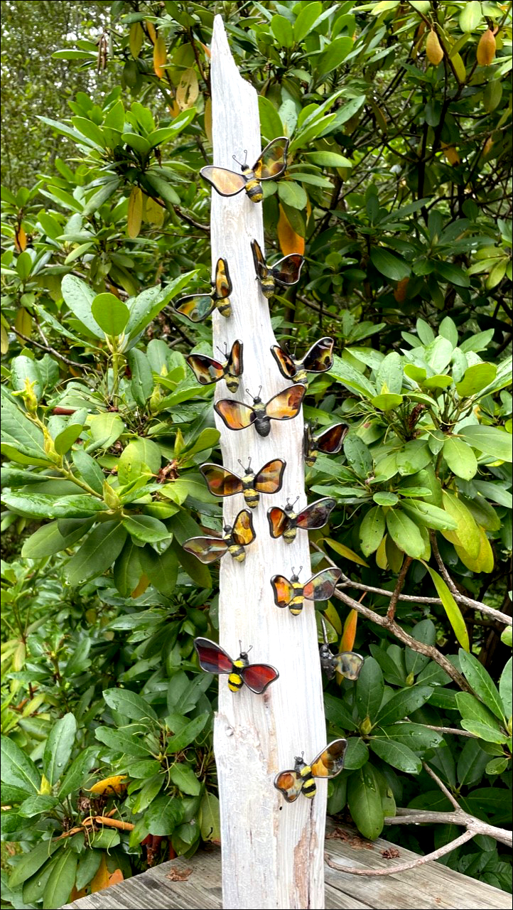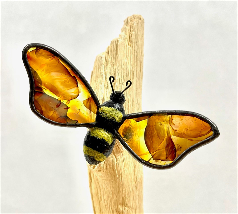 With this three pack Bumblebee Kit you will be able to make a Bumblebee that hangs from a ring, a Bumblebee that can be fastened to your window frame, or a piece of driftwood, and a Bumblebee on a brass rod that could be placed in a potted plant.