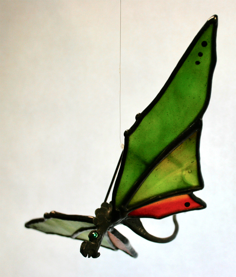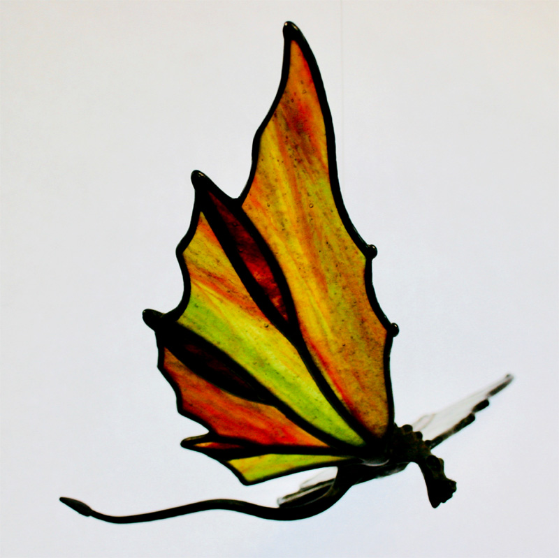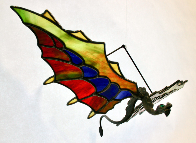 Sparkling Swarovski rhinestone crystals for dragon eyes are provided in your kit. Visit us at the studio to choose from superior imported and domestic stained glass to create your dragon wings.
